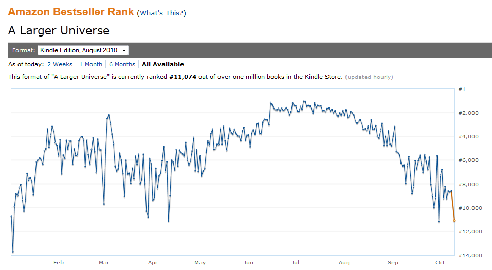 You are apparently a limited audience My novel has been drifting downward in the Amazon bestseller list. I had hoped for a longer run. Drifting slowly downward. High was #983